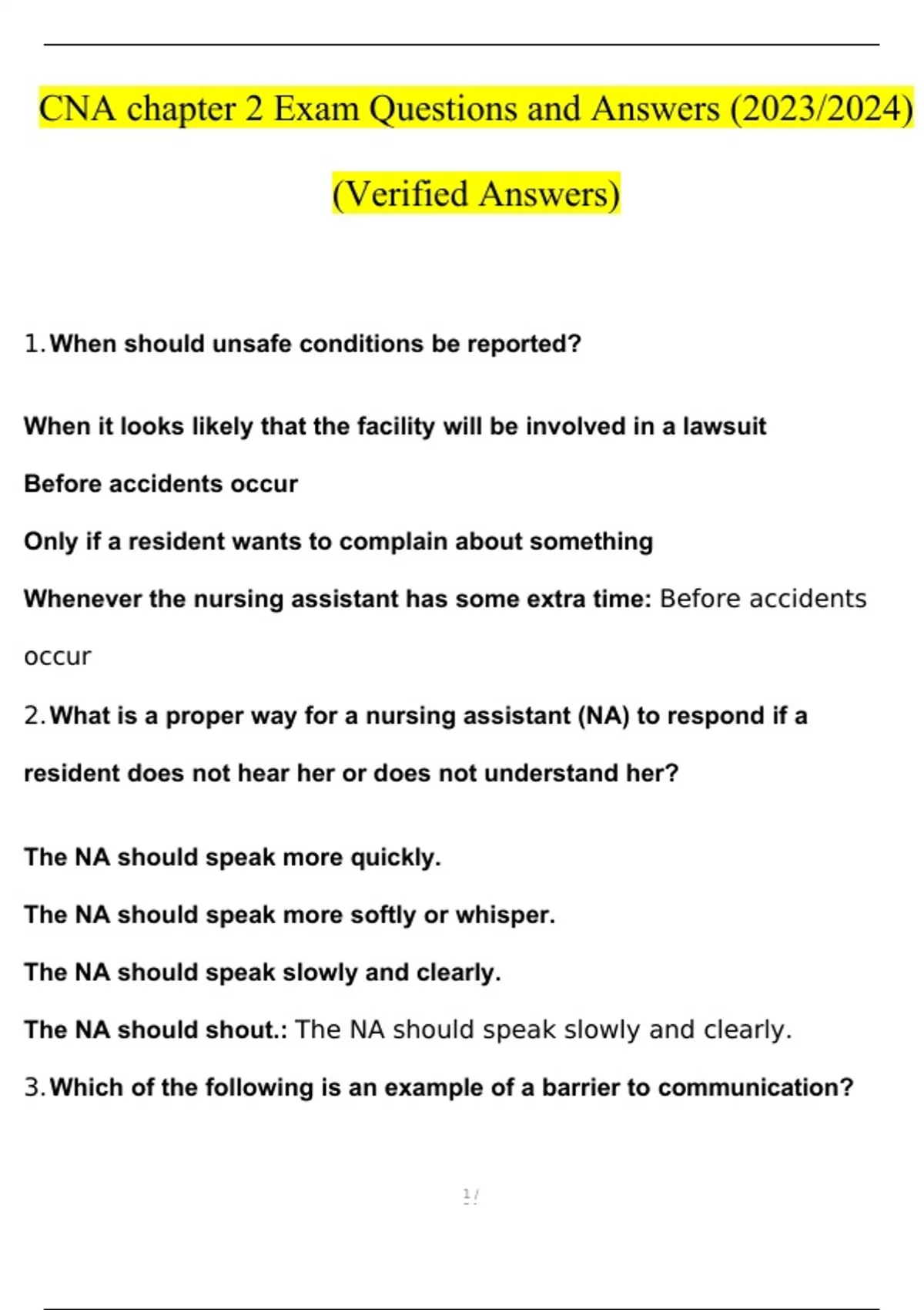 CNA chapter 2 Exam Questions and Answers (2023/2024) (Verified Answers)