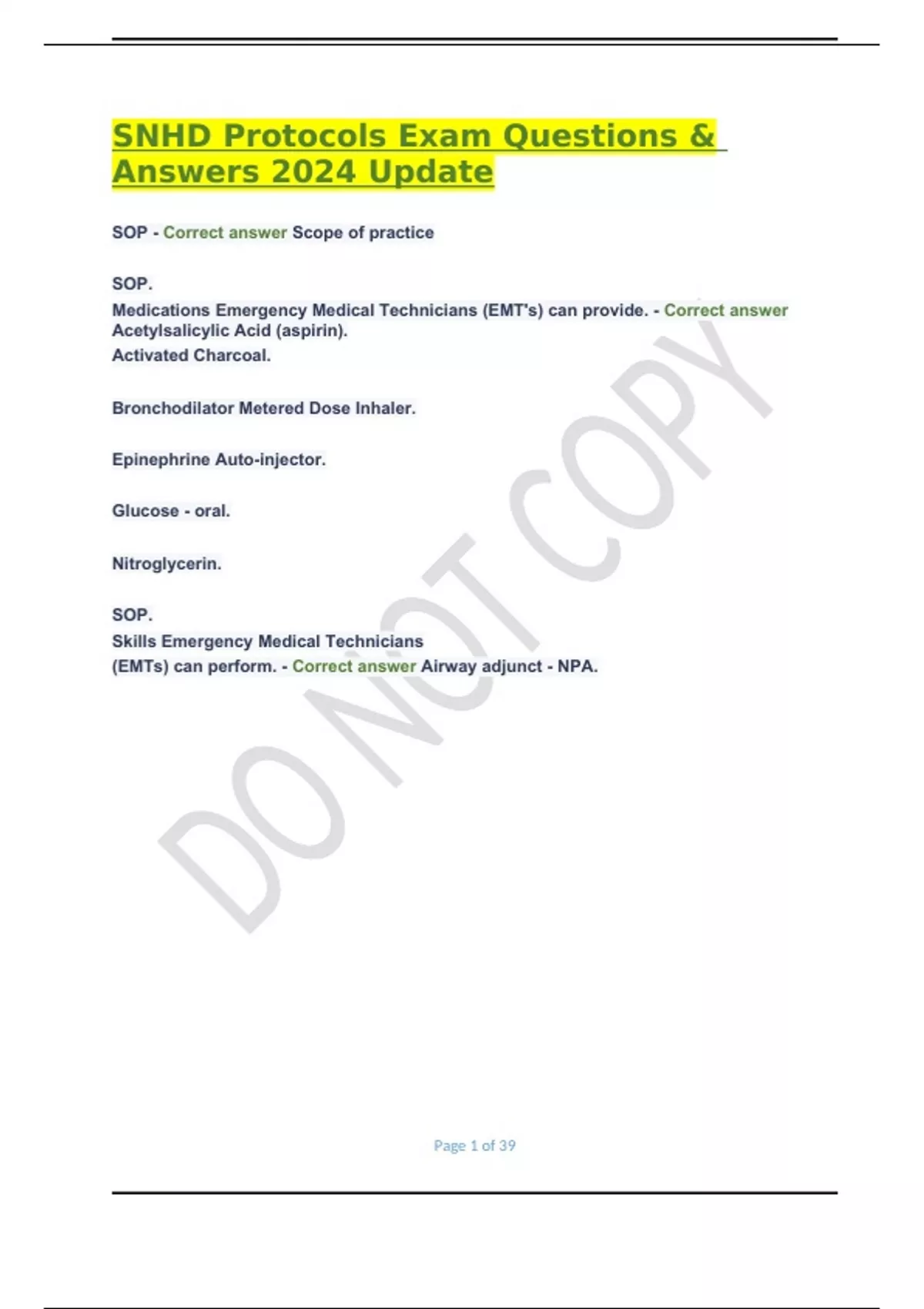 SNHD Protocols Exam Questions & Answers 2024 Update.SNHD Protocols Exam Questions & Answers 2024 Update.