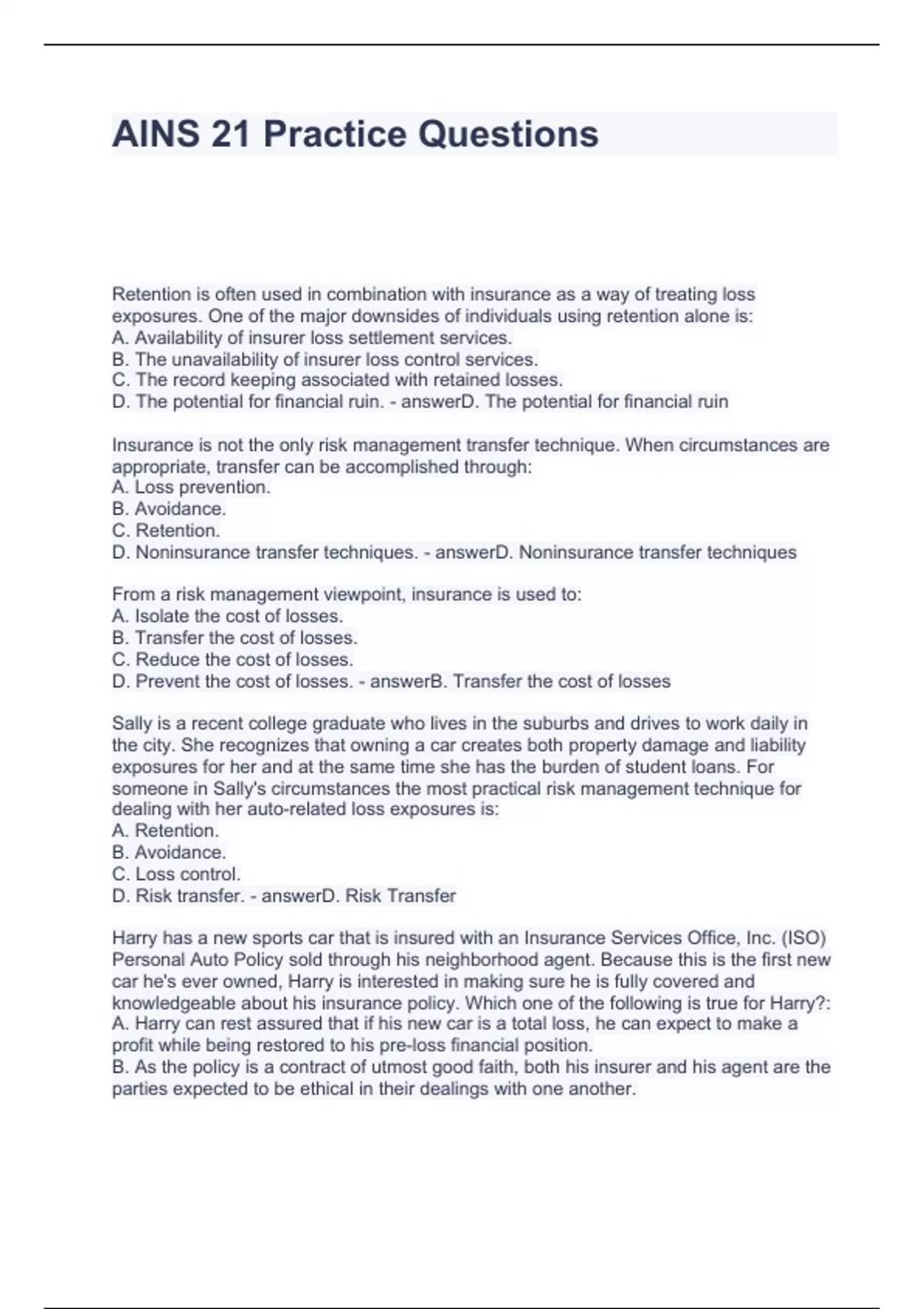 ains 21 practice questions