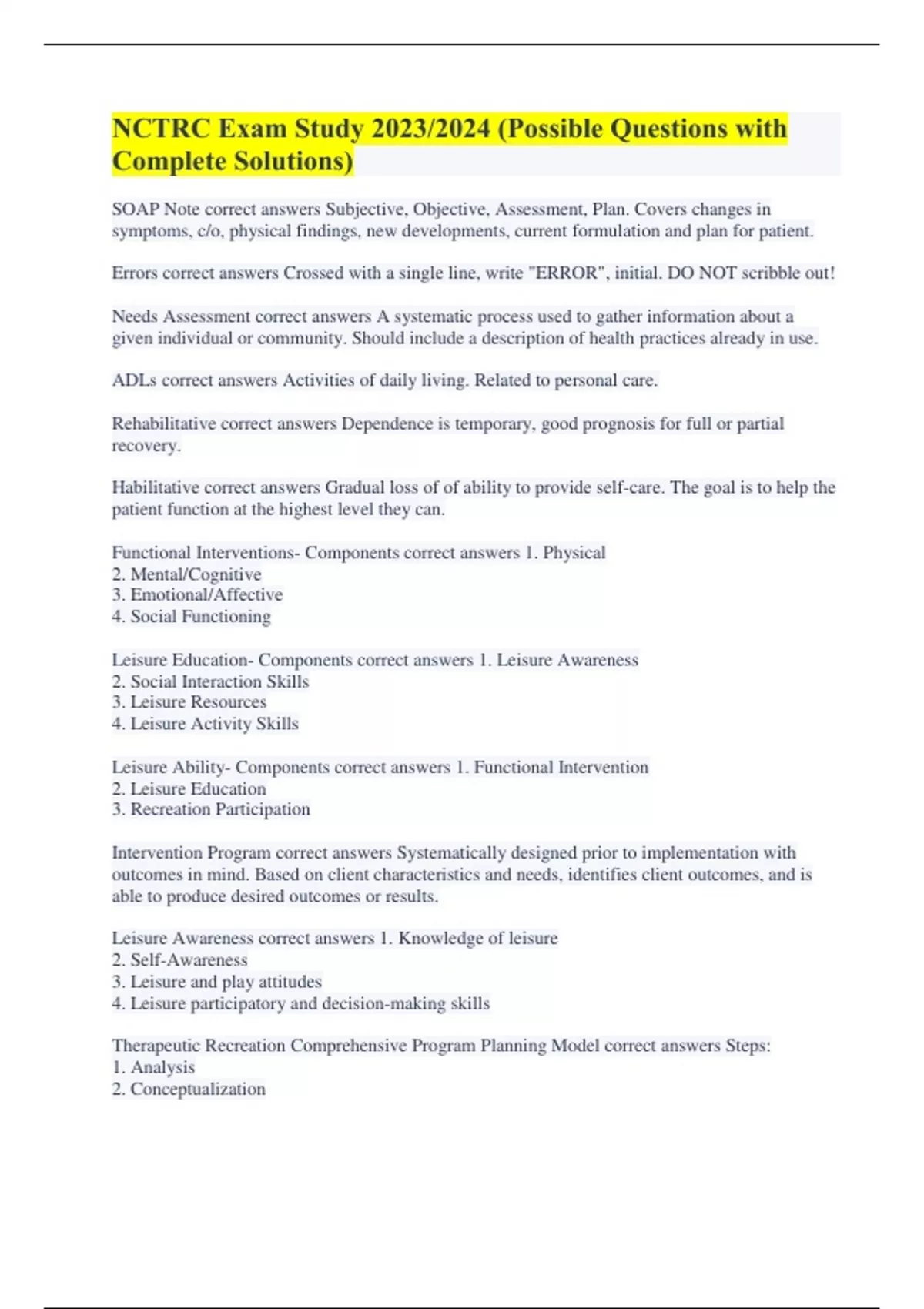 NCTRC Exam Study 2023/2024 (Possible Questions with Complete Solutions)