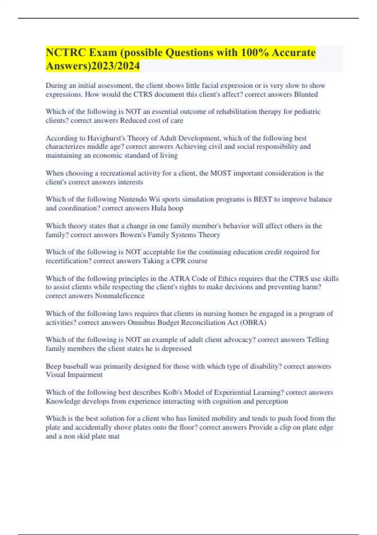 NCTRC Exam (possible Questions with 100% Accurate Answers)2023/2024