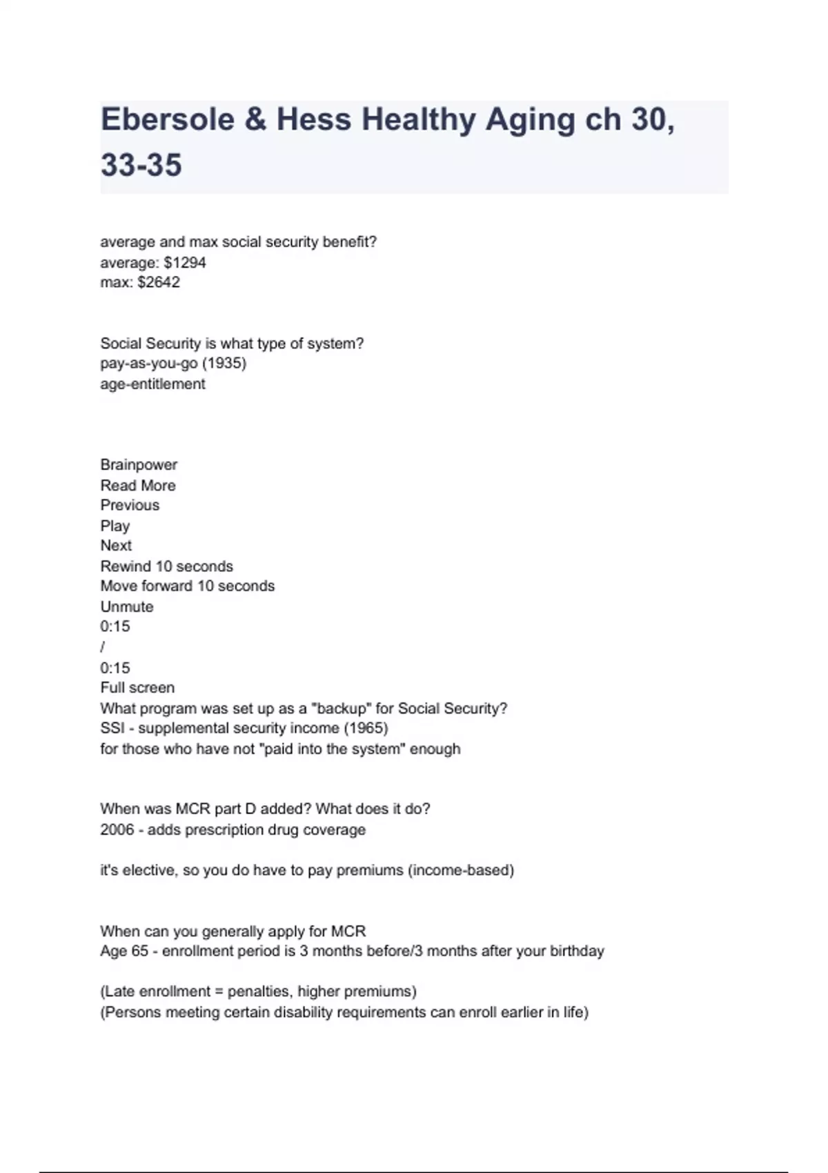 Ebersole & Hess Healthy Aging ch 30, 33-35 already graded A+ 2024/2025