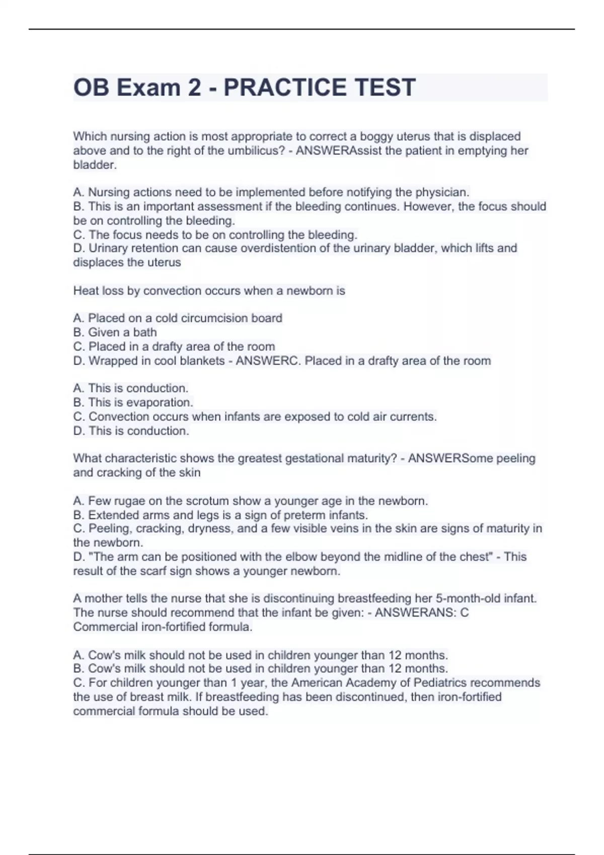 OB Exam 2 - PRACTICE TEST.Questions with answers 2024