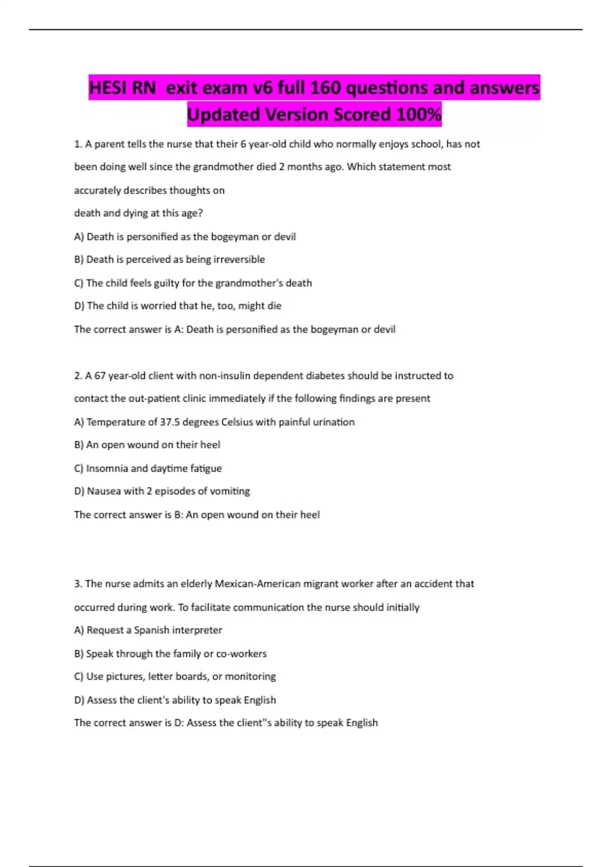 HESI RN exit exam v6 full 160 questions and answers Updated Version Scored 100%
