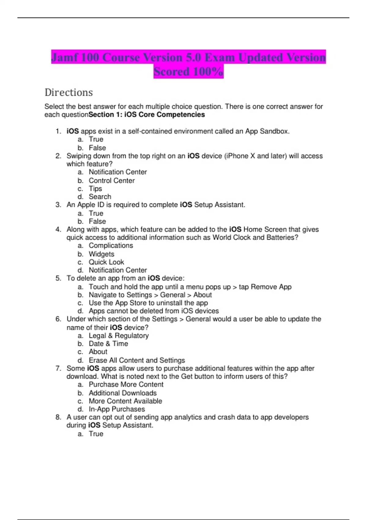 jamf 100 practice test exam updated version questi