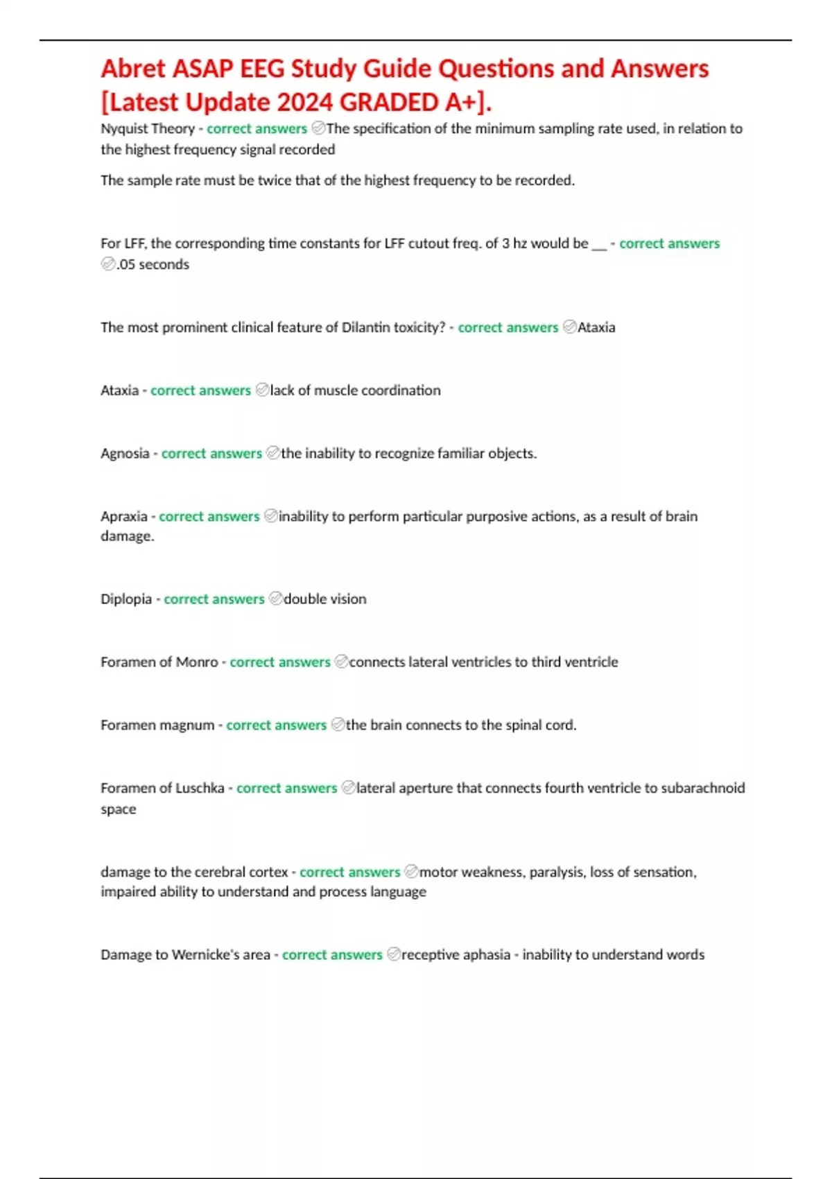 Abret ASAP EEG Study Guide Questions and Answers [Latest Update 2024 GRADED A+].