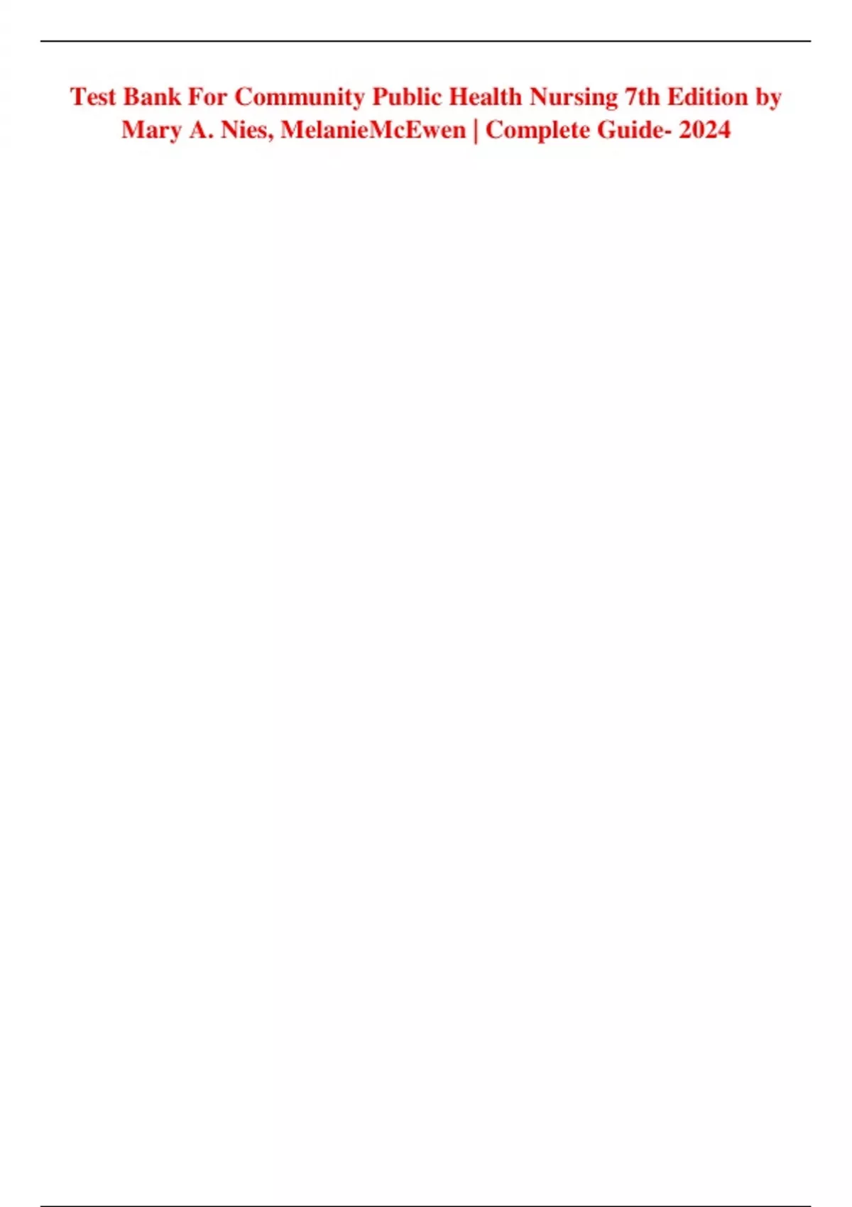 Test Bank For Community Public Health Nursing 7th Edition by Mary A. Nies, Melanie McEwen | Complete Guide- 2024