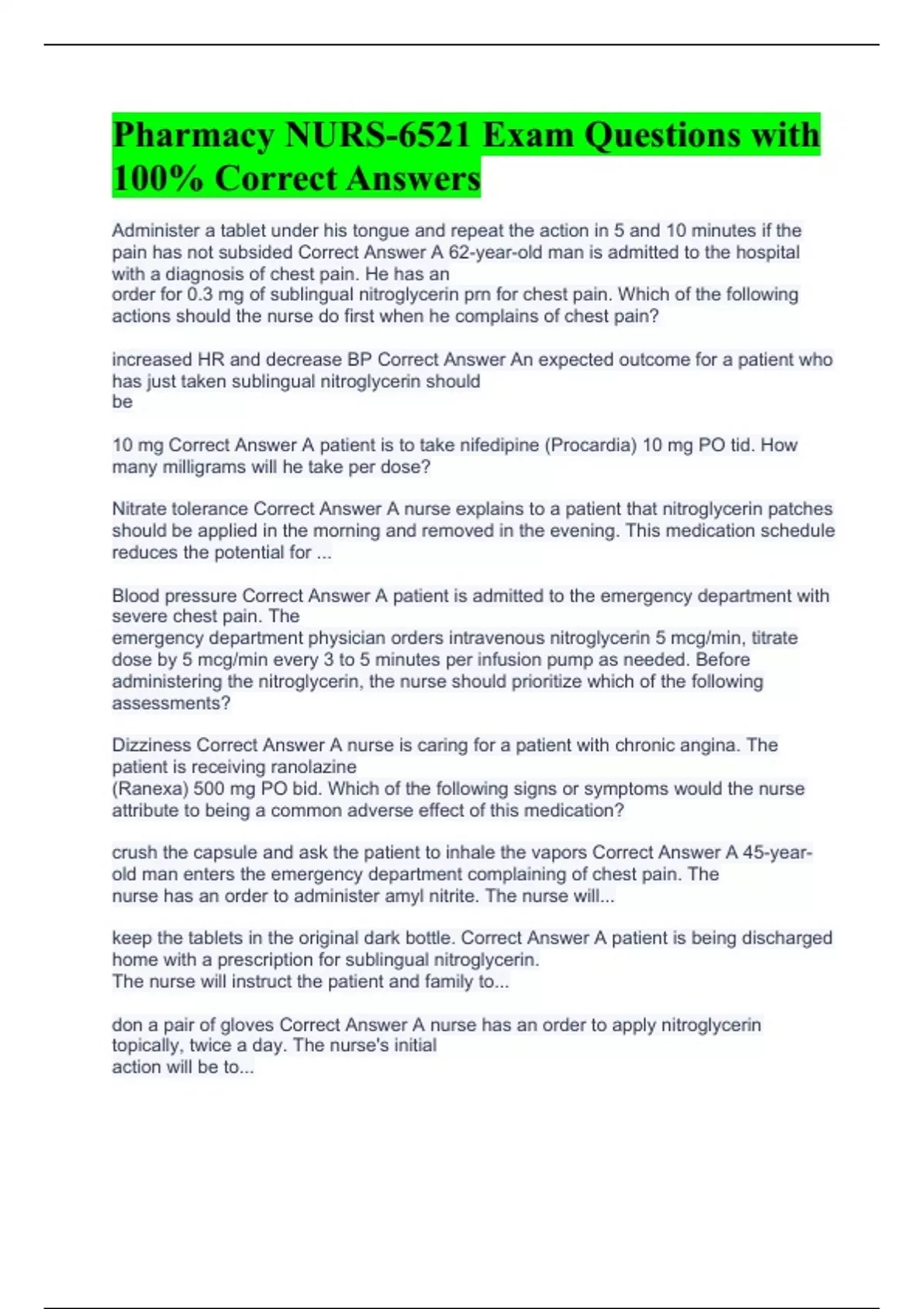 Pharmacy NURS-6521 Exam Questions with 100% Correct Answers
