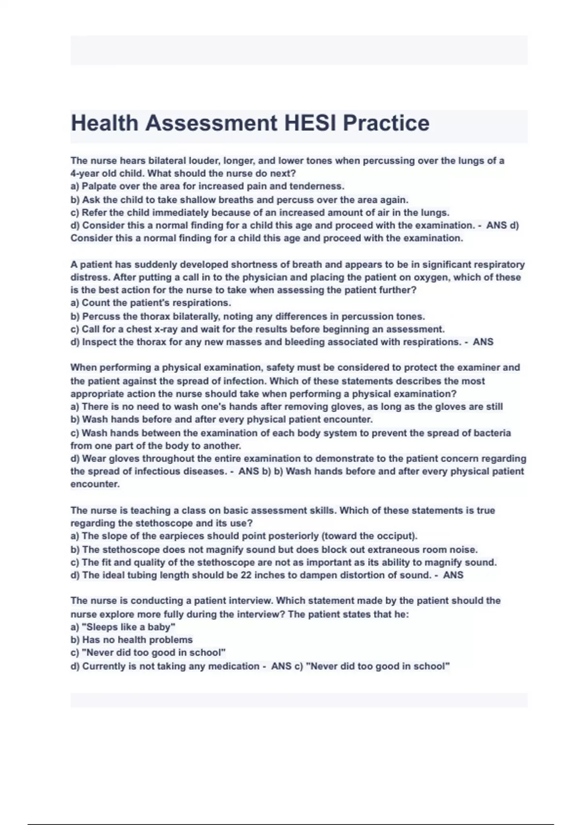 Health Assessment HESI Practice Exam Questions with complete Answers 2024( A+ GRADED 100% VERIFIED).