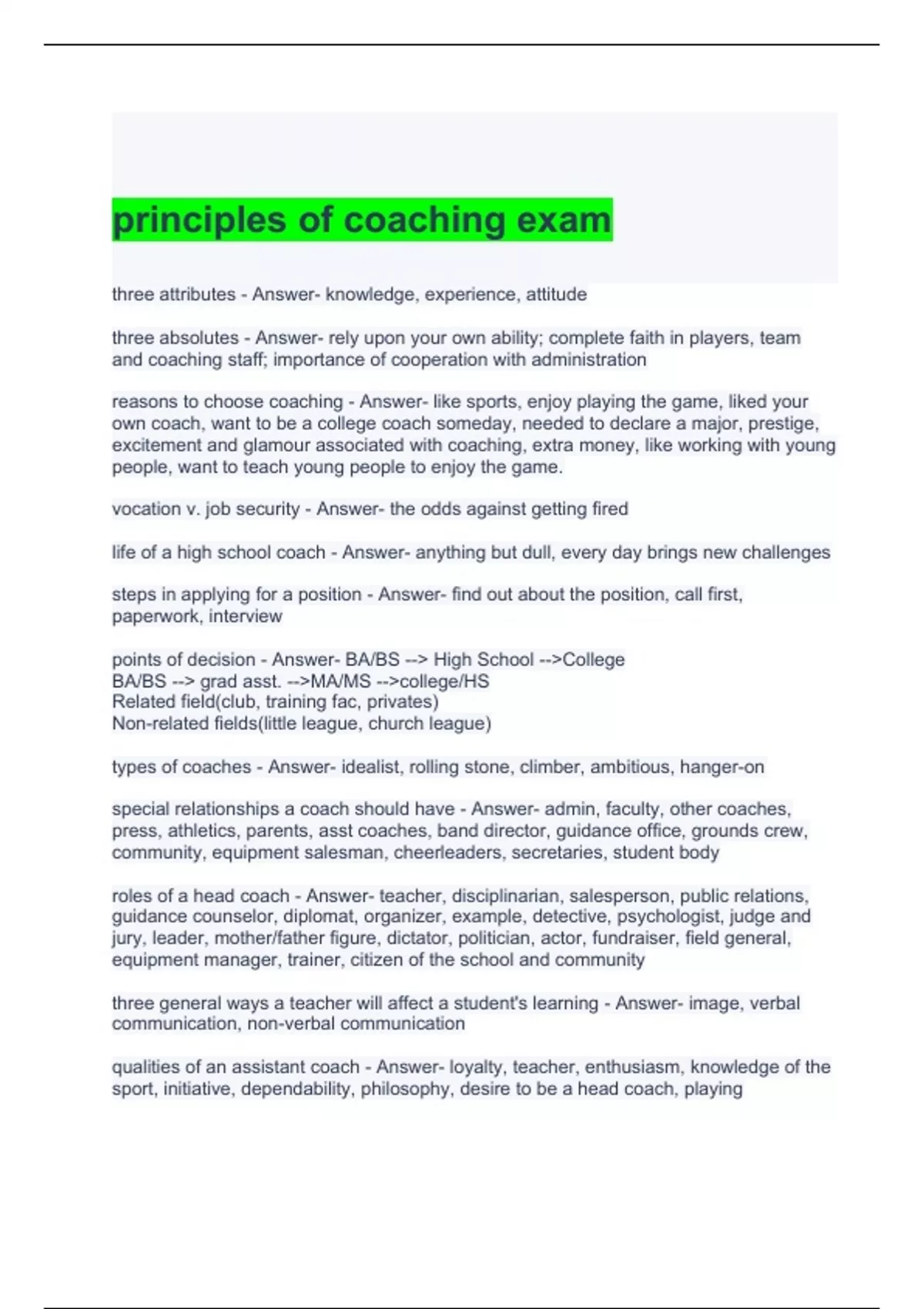 principles of coaching exam with 100% correct answers