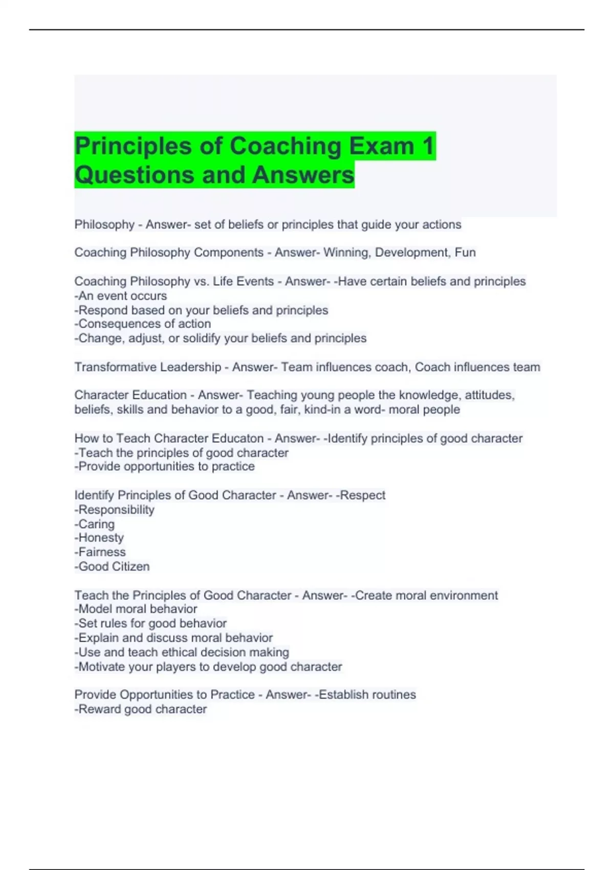 principles of coaching exam 1 questions and answer