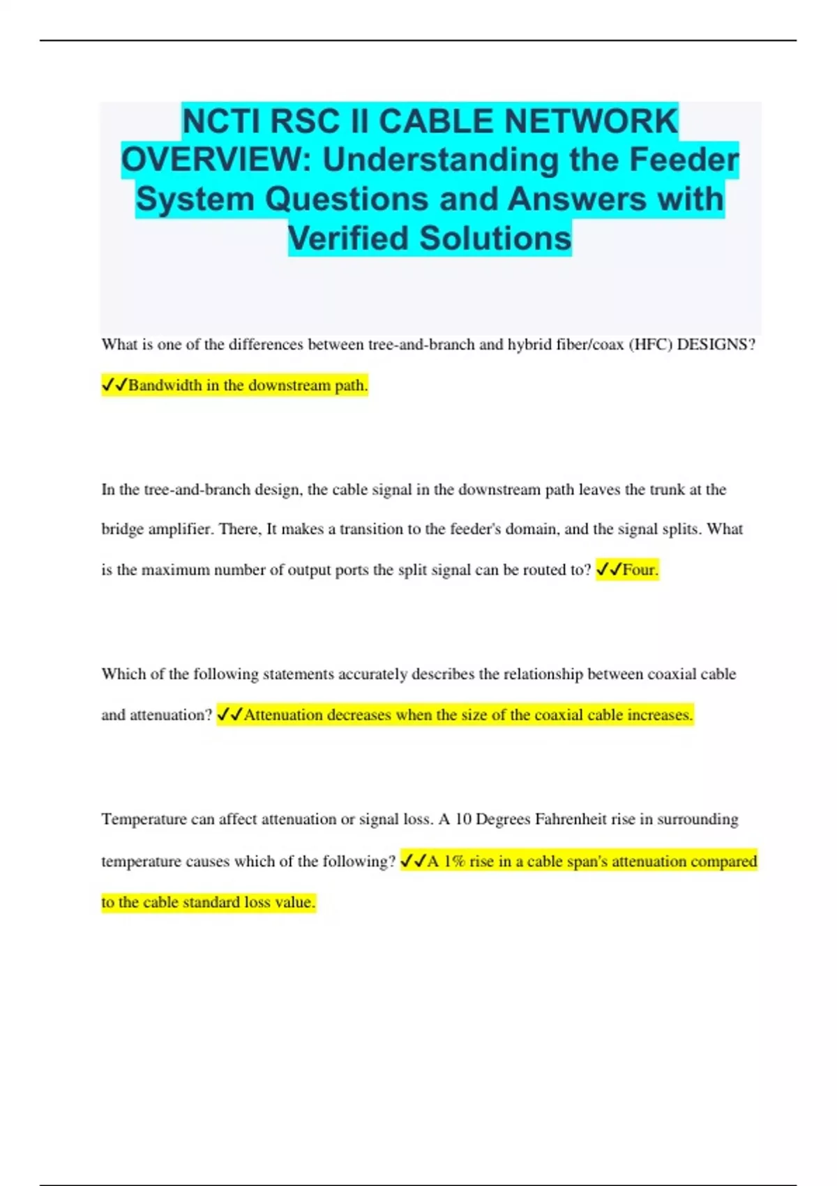 temperature causes which of the following? ✔✔A 1% rise in a cable span's attenuation compared