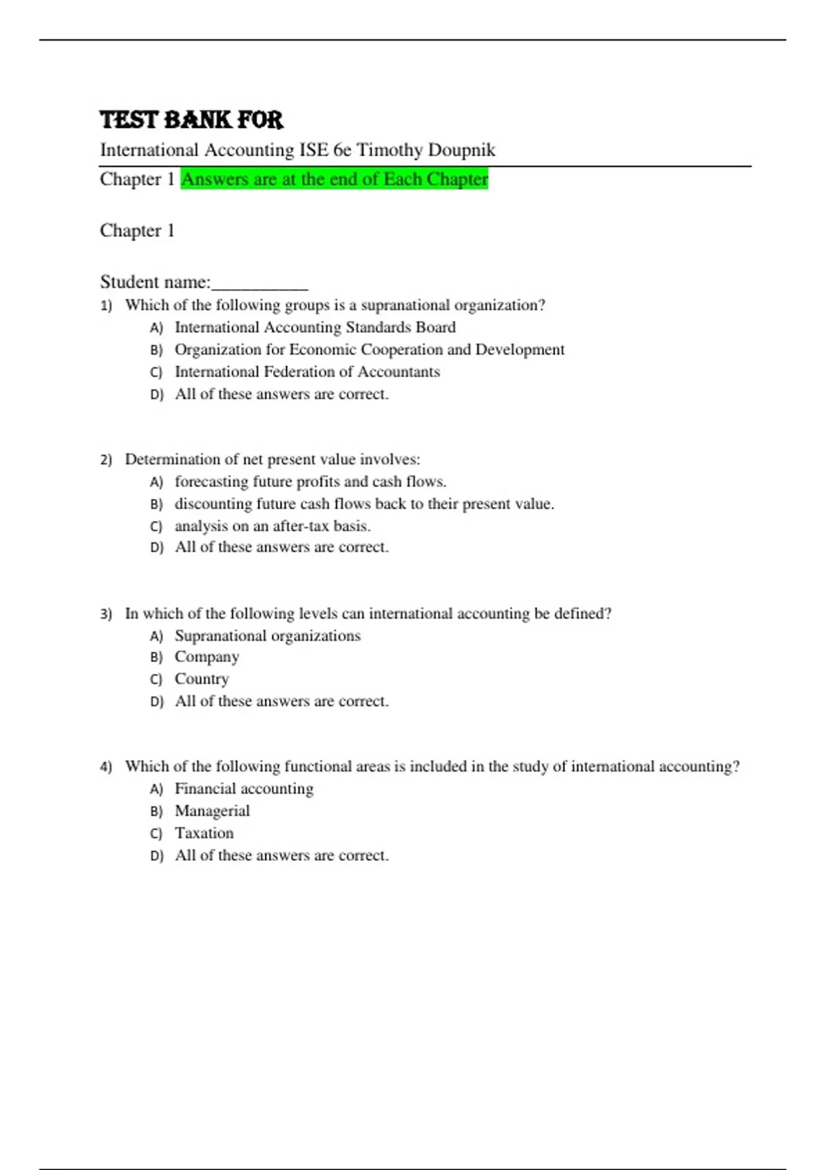 Test Bank for International Accounting ISE 6th Edition by Timothy Doupnik, Mark Finn, Giorgio Gotti, Hector Perera