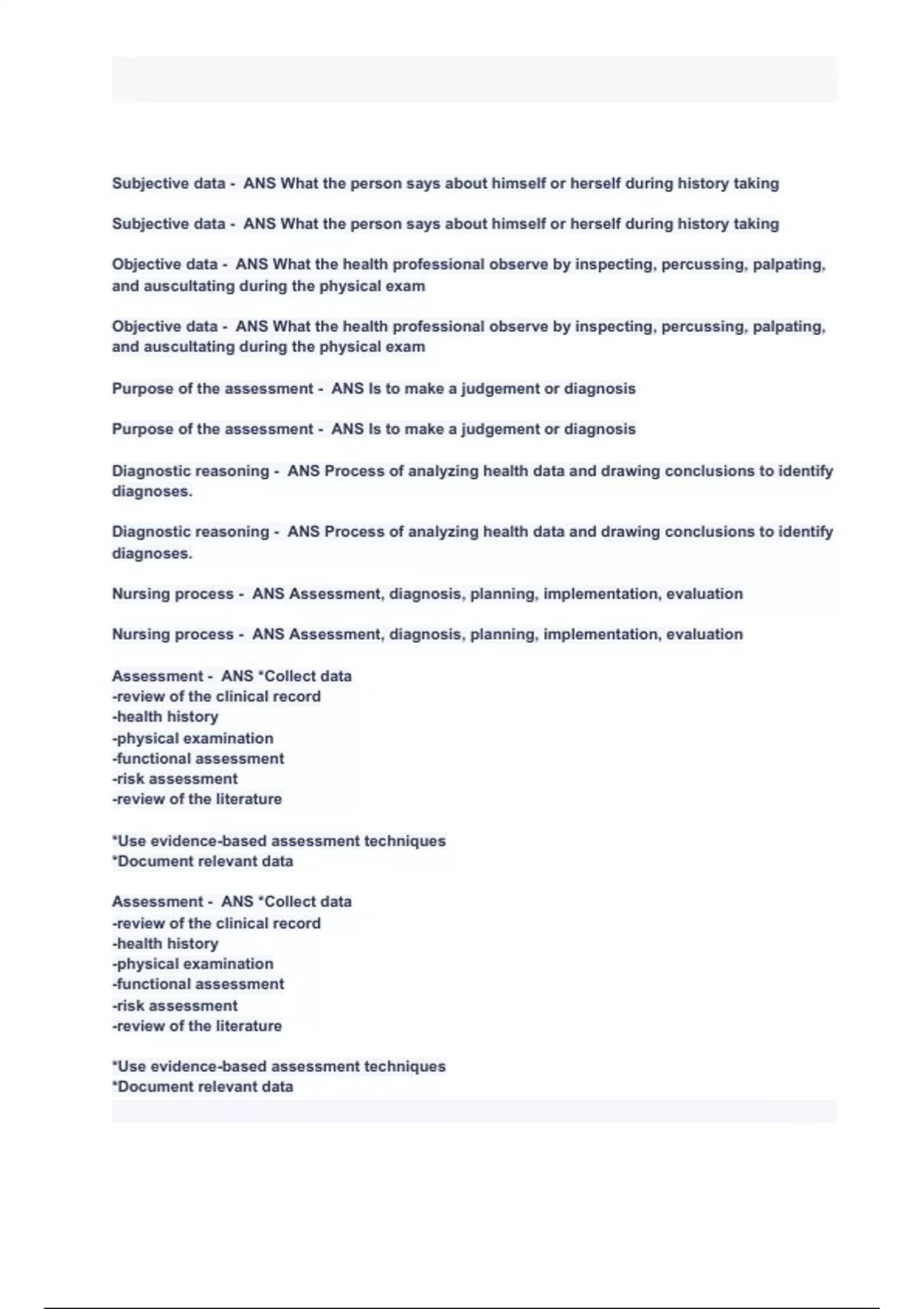 hesi review health assessment