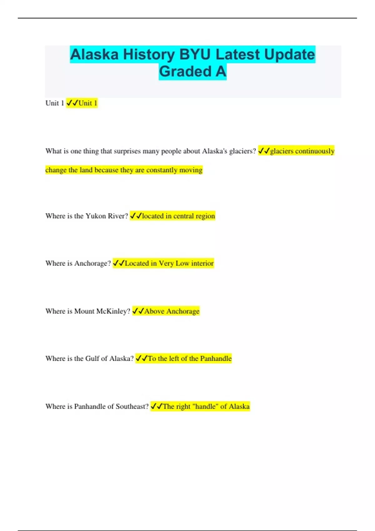 Alaska History BYU Latest Update Graded A