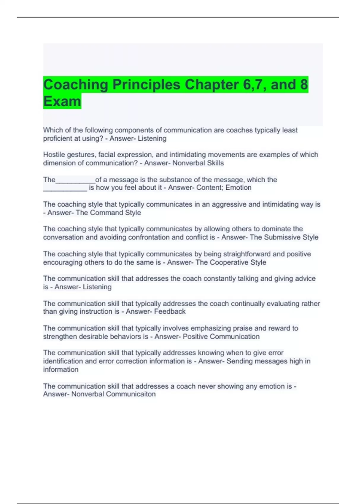 Coaching Principles Chapter 6,7, and 8 Exam Questions and Answers
