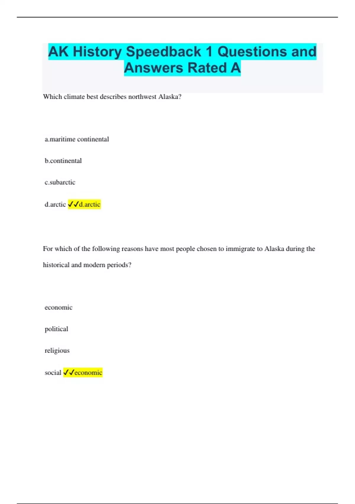 ak history speedback 1 questions and answers rated