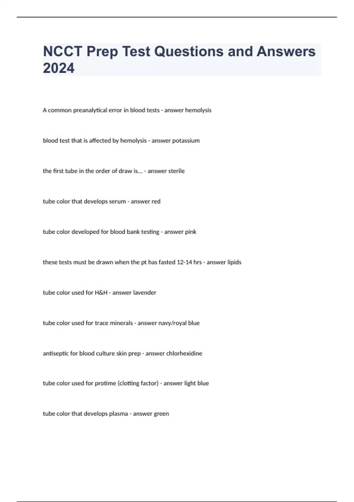 NCCT Prep Test Questions and Answers 2024