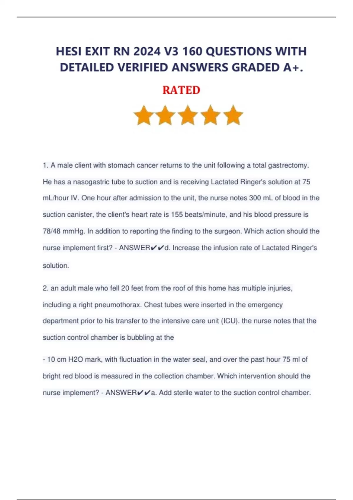 HESI EXIT RN 2024 V3 160 QUESTIONS WITH DETAILED VERIFIED ANSWERS GRADED A