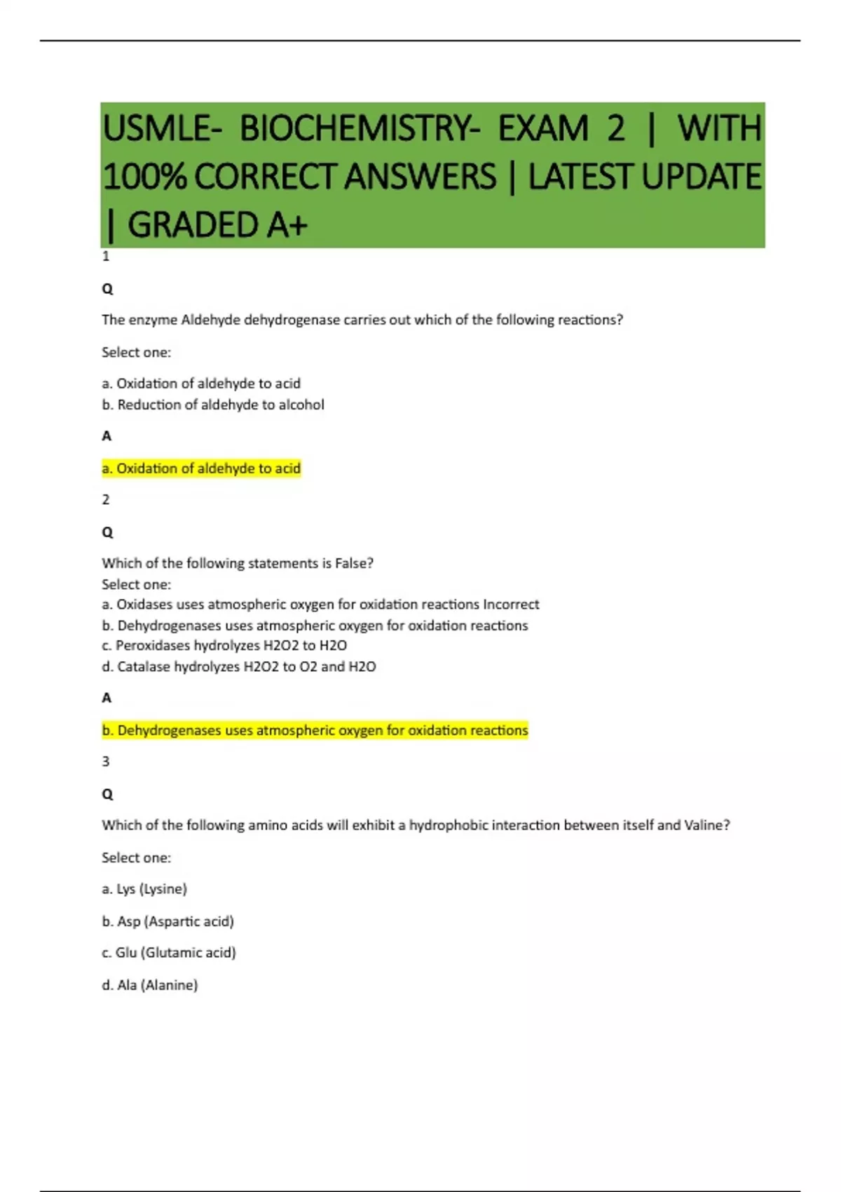 USMLE- BIOCHEMISTRY- EXAM 2 | WITH 100% CORRECT ANSWERS | LATEST UPDATE | GRADED A+