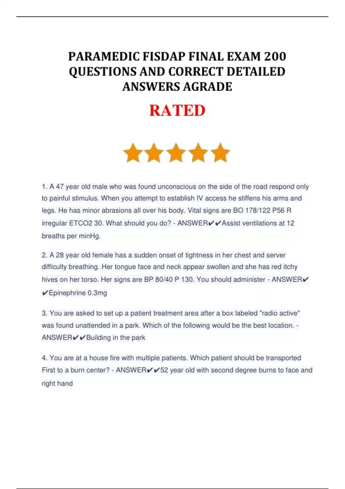 PARAMEDIC FISDAP FINAL EXAM 200 QUESTIONS AND CORRECT DETAILED ANSWERS AGRADE