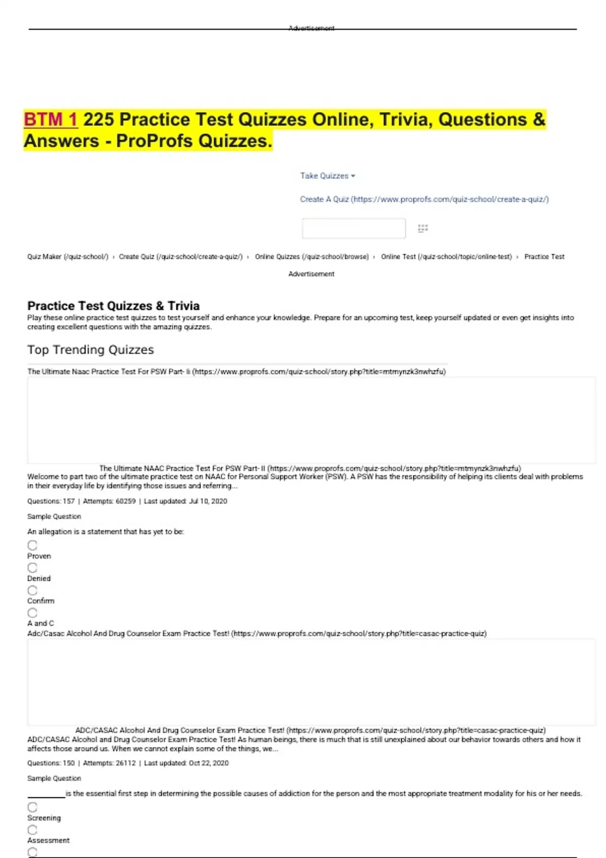 BTM 1 225 Practice Test Quizzes Online, Trivia, Questions & Answers - ProProfs Quizzes.