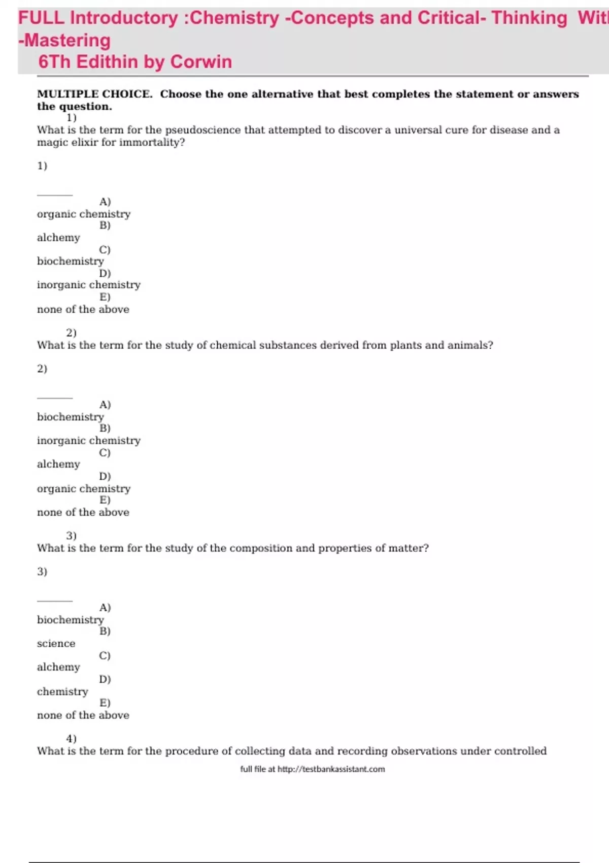 test bank for introductory chemistry concepts and