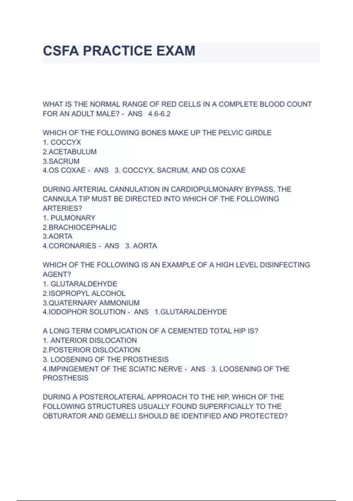 CSFA PRACTICE EXAM QUESTIONS AND ANSWERS