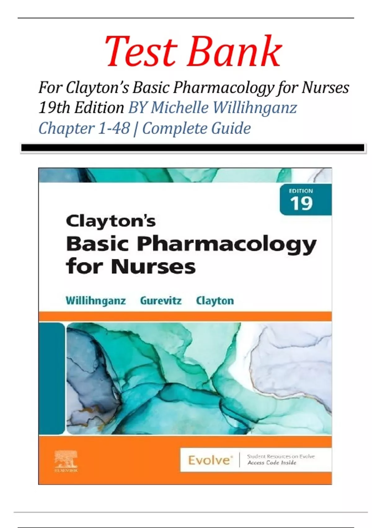 Test Bank For Clayton’s Basic Pharmacology for Nurses 19th Edition By Michelle J. Willihnganz, Samuel L. Gurevitz, Bruce Clayton Chapter 1-48