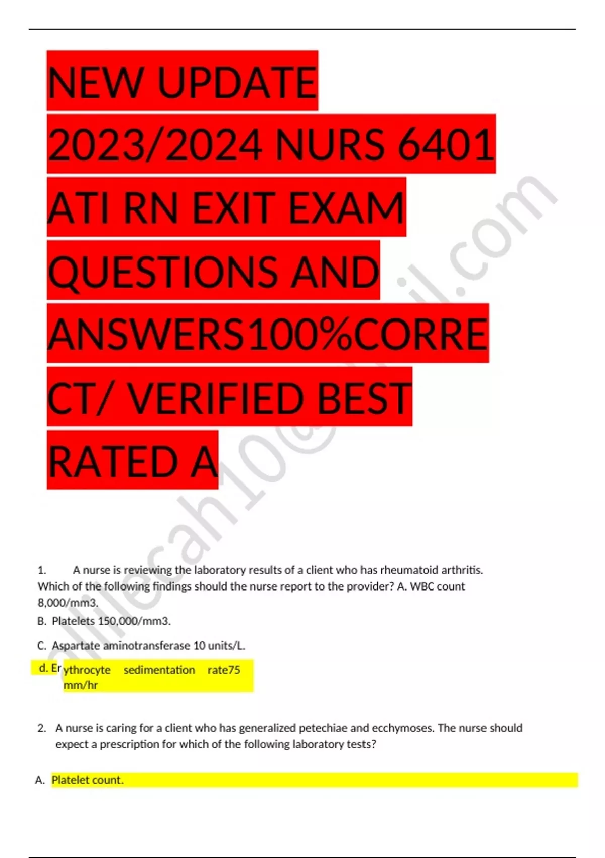 Hesi EXAM QUESTIONS & ANSWERS/ LATEST UPDATE / RATED A+