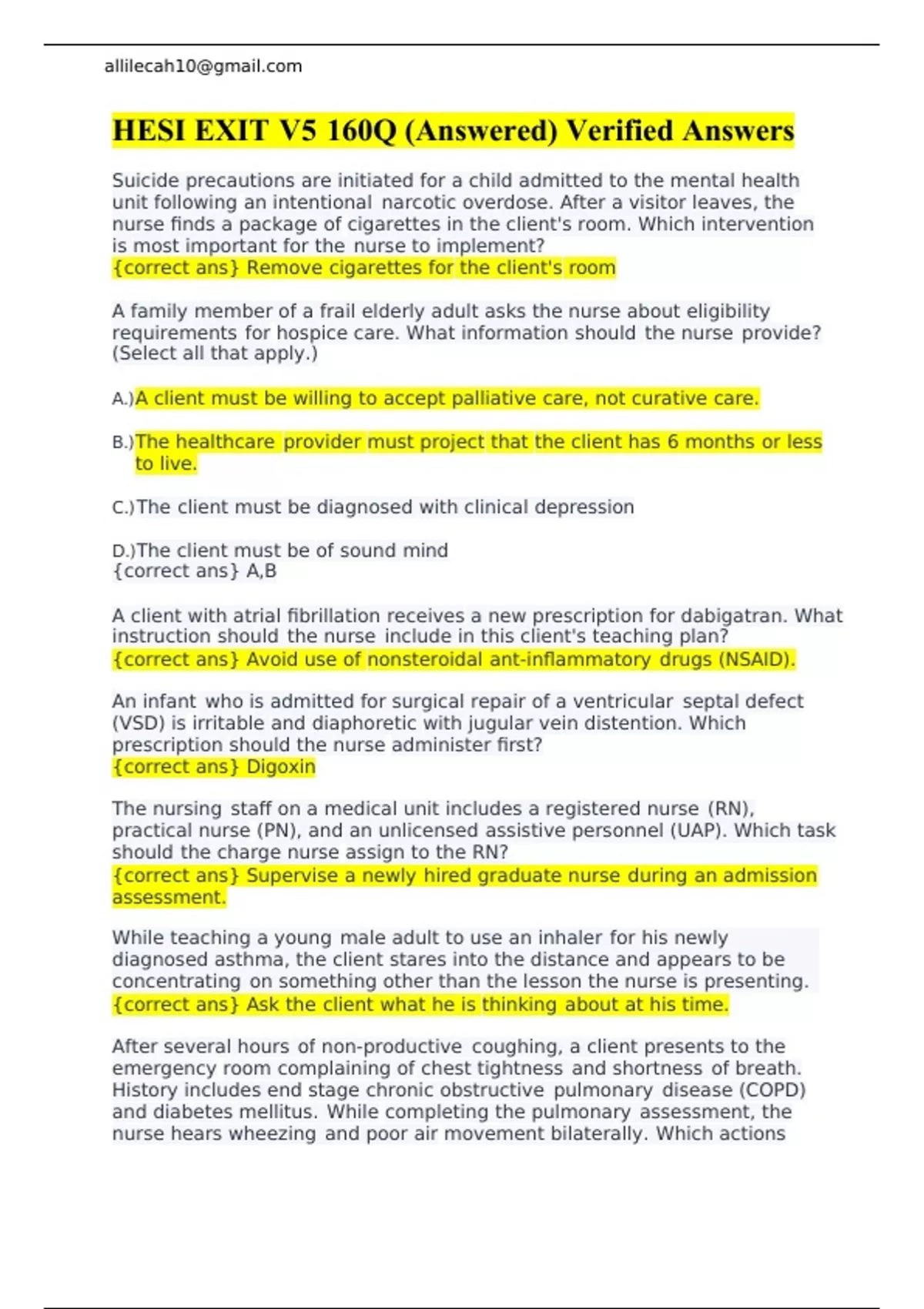 Hesi exit v5 EXAM QUESTIONS & ANSWERS/ LATEST UPDATE / RATED A+