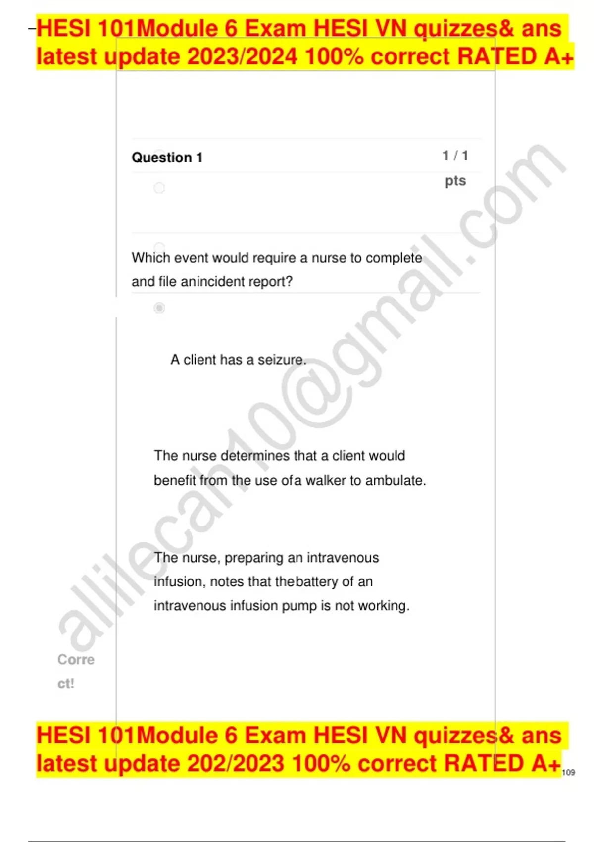 HESI module 6 EXAM QUESTIONS & ANSWERS/ LATEST UPDATE / RATED A+