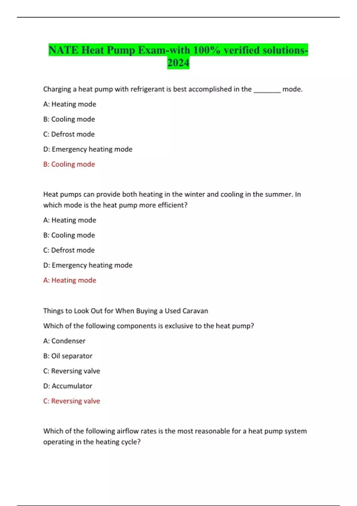 NATE Heat Pump Exam-with 100% verified solutions-2024