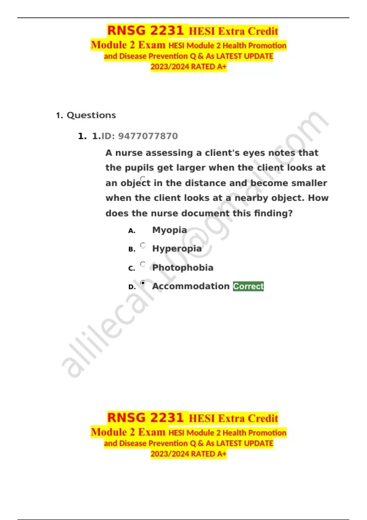 Hesi extra credit module 2 EXAM QUESTIONS & ANSWERS/ LATEST UPDATE / RATED A+