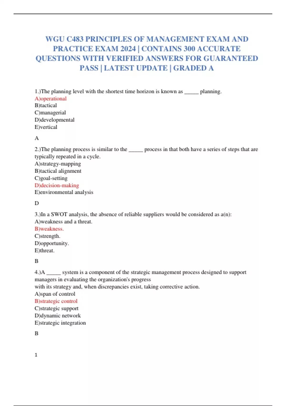 1 wgu c483 principles of management exam and pract