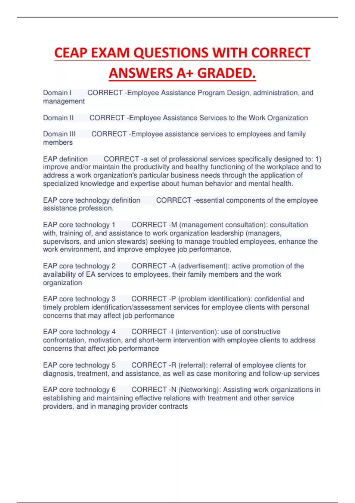 EAP definition CORRECT -a set of professional services specifically designed to: 1)