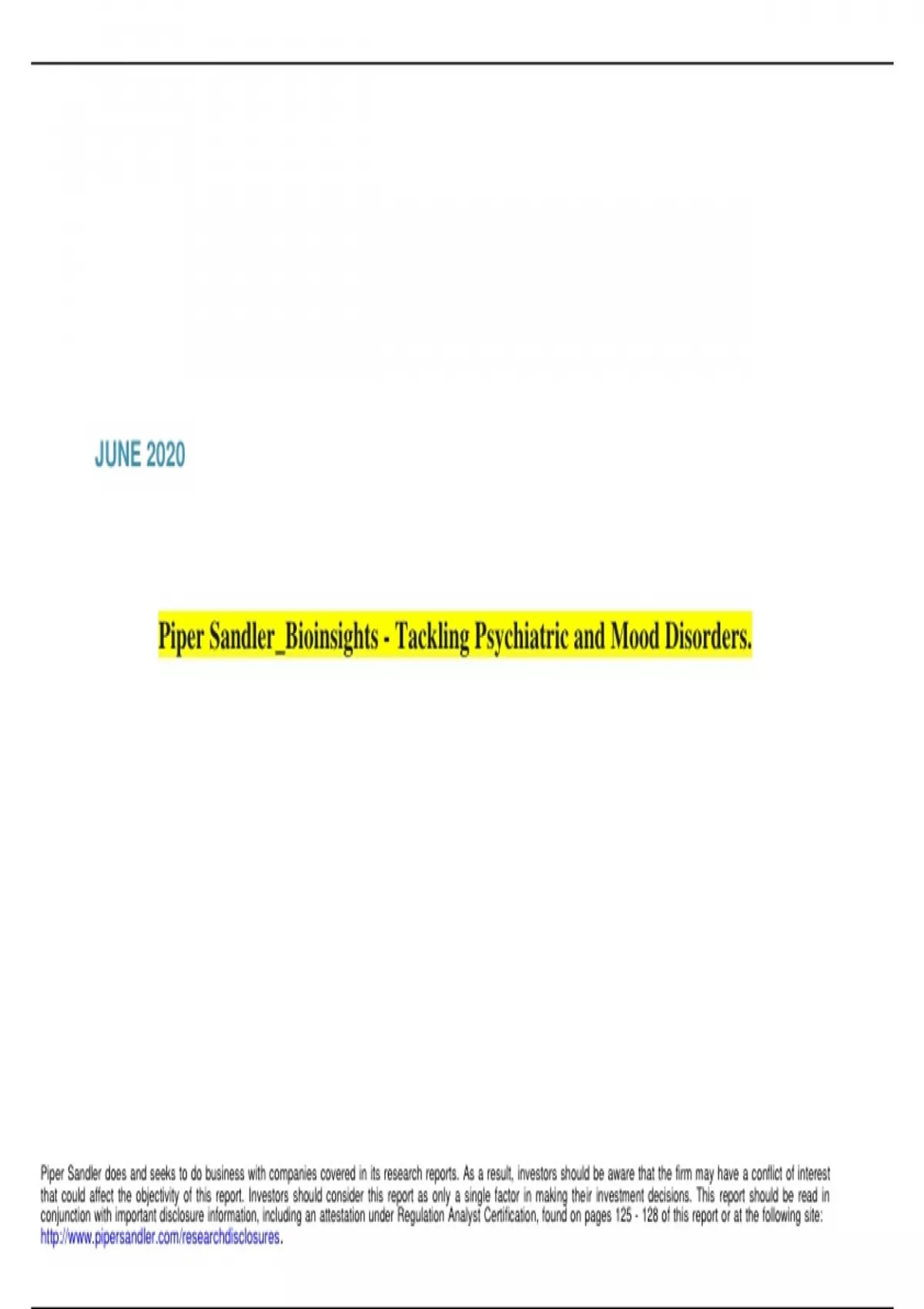 Piper Sandler_Bioinsights - Tackling Psychiatric and Mood Disorders.