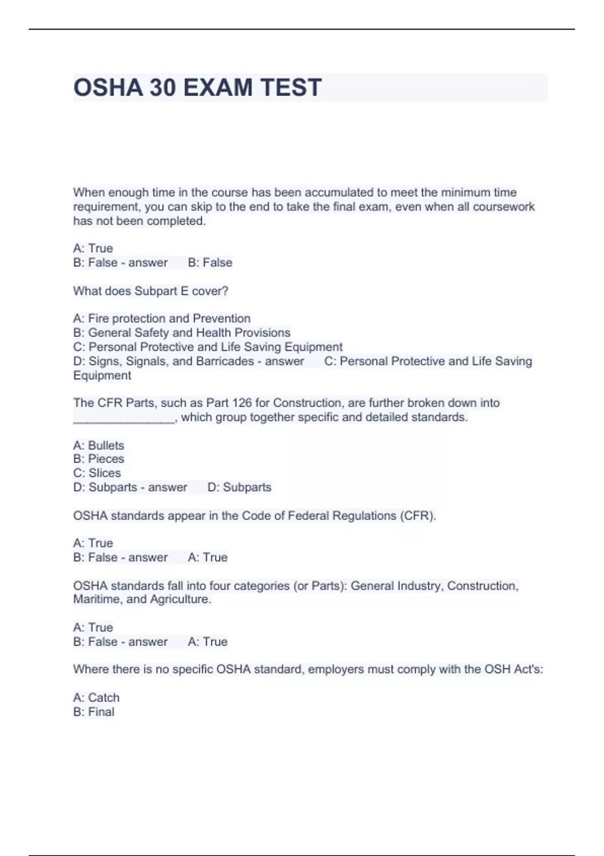 OSHA 30 EXAM TEST QUESTIONS AND ANSWERS GRADED A+ 2024