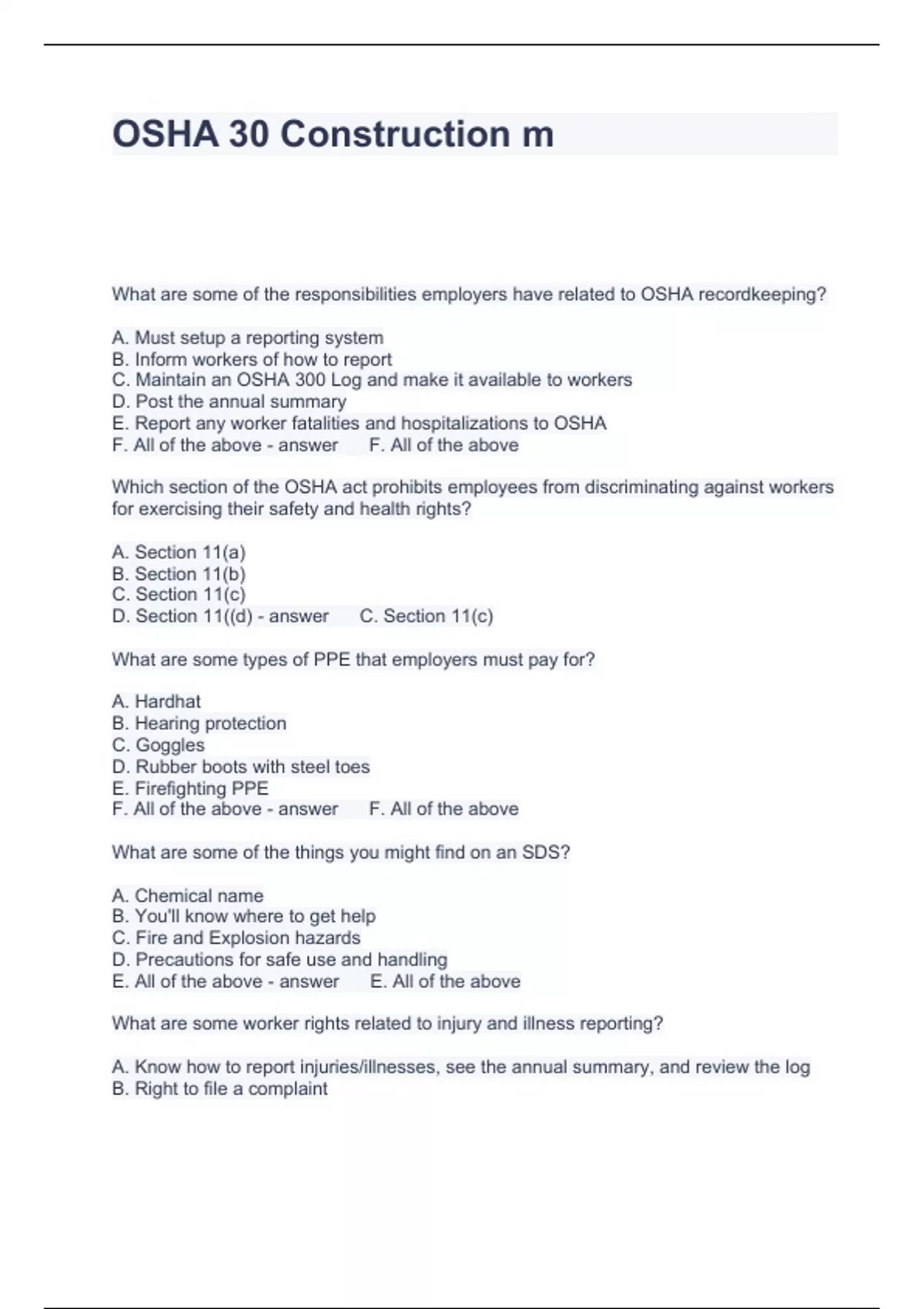 OSHA 30 Construction m Questions and Answers Latest updated 2024