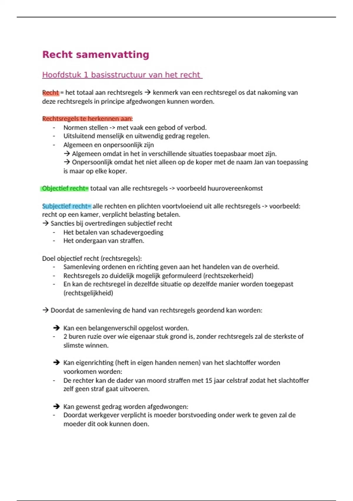 Recht samenvatting