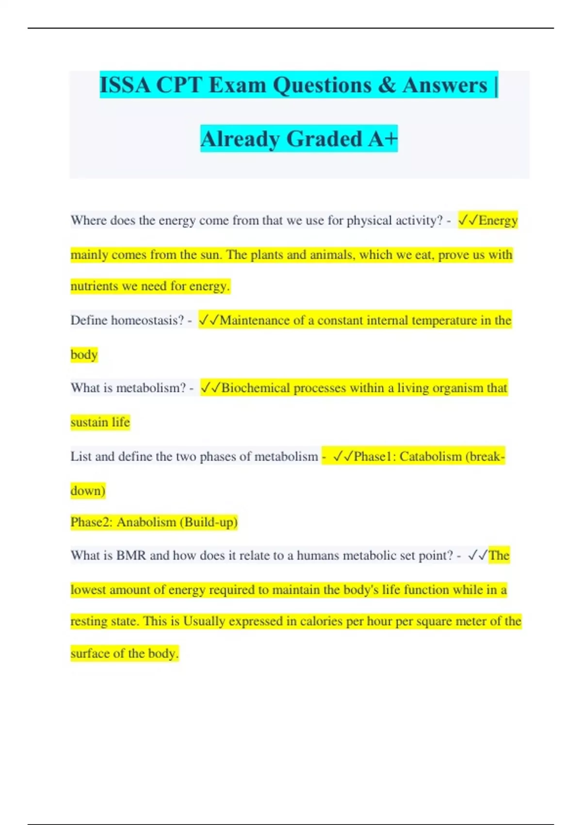 ISSA CPT Exam Questions & Answers | Already Graded A+
