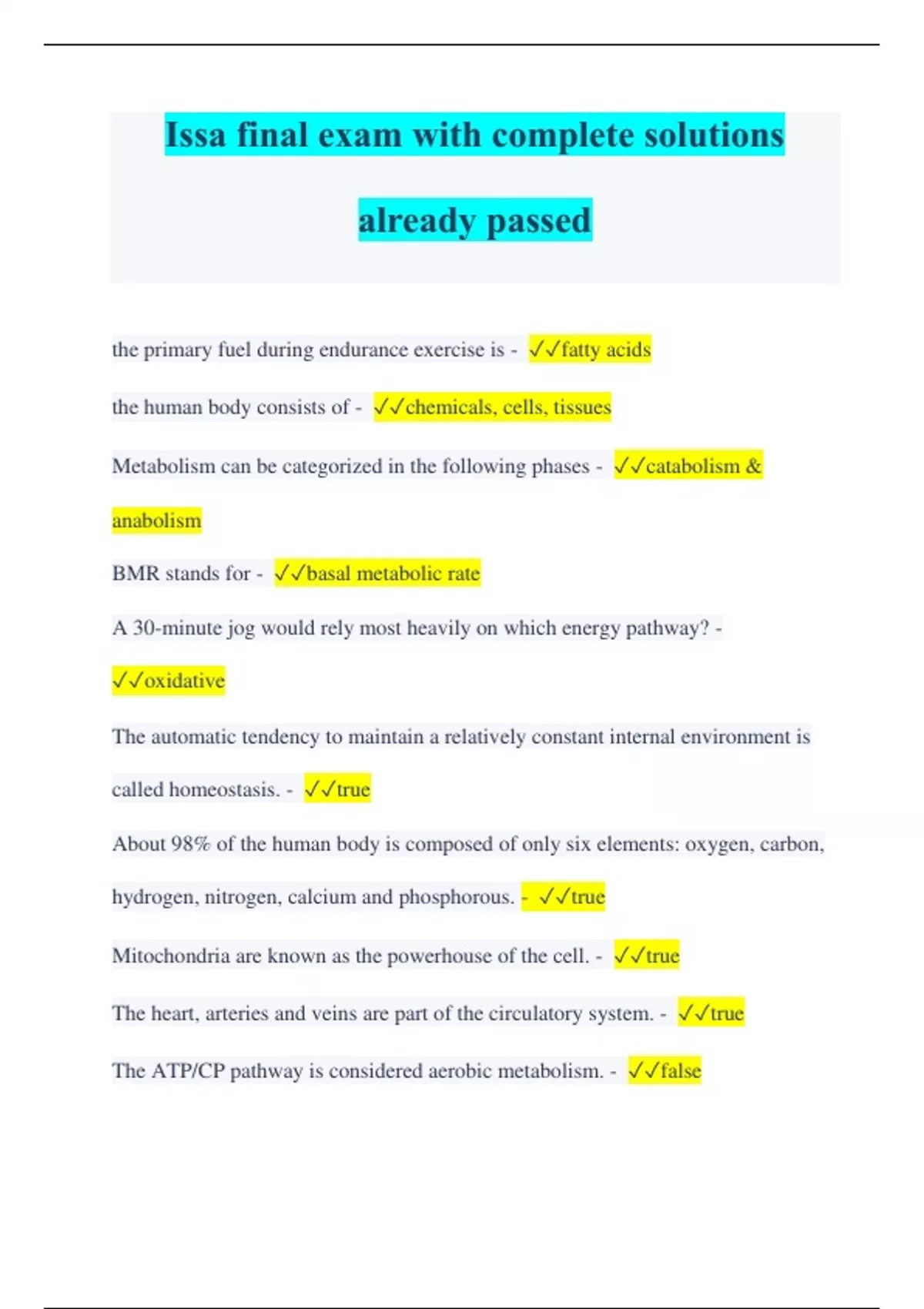 ISSA Bundled Exams Together with complete solutions Questions and Answers Graded A, Latest Update (Verified Answers) (Full Solution Pack)