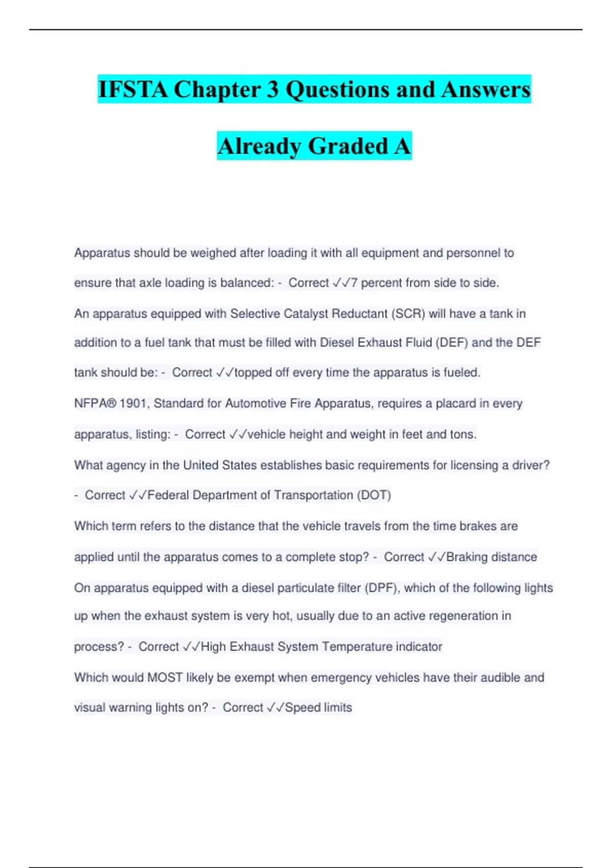 IFSTA Chapter 3 Questions and Answers Already Graded A
