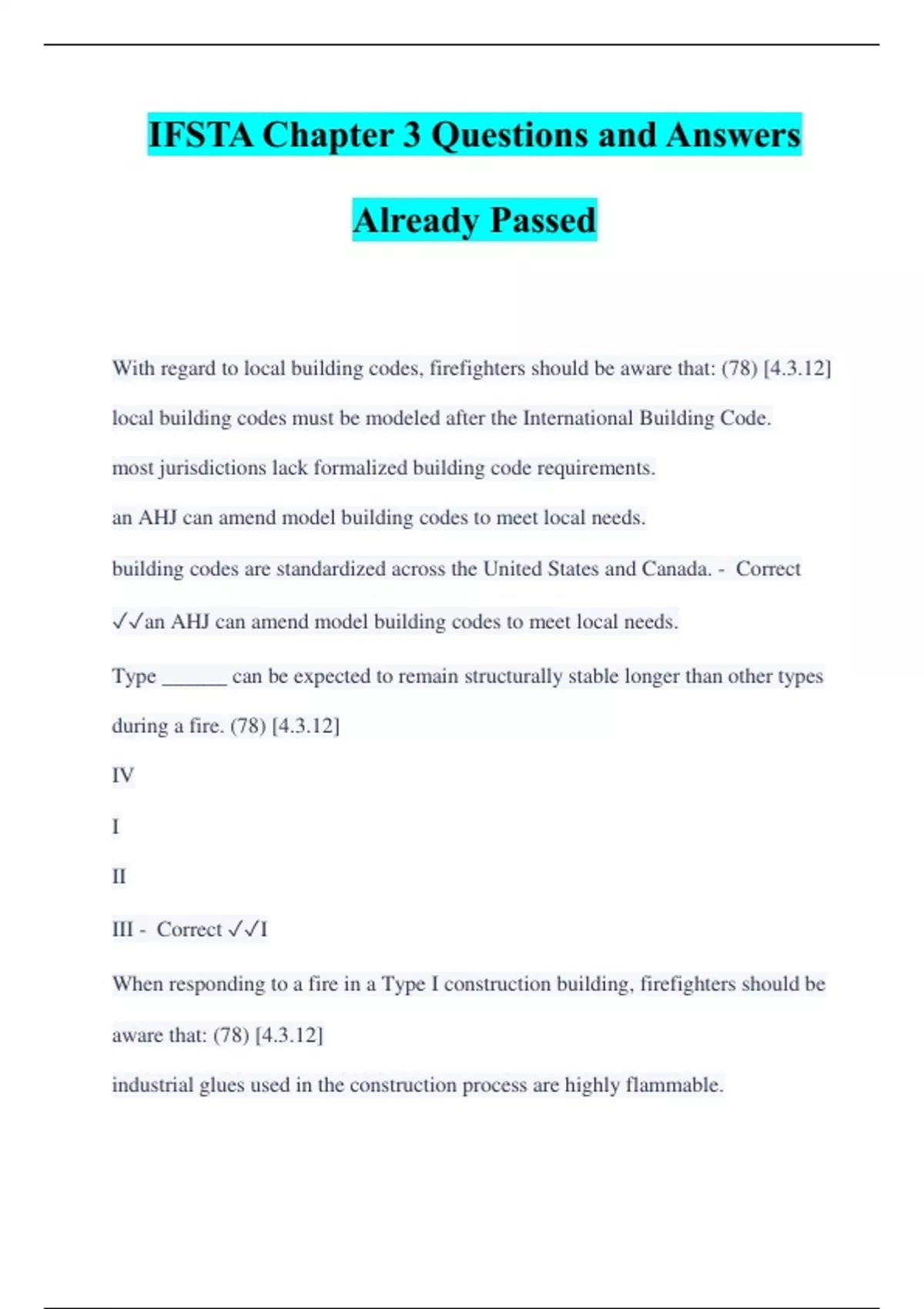 IFSTA Chapter 3 Questions and Answers Already Passed