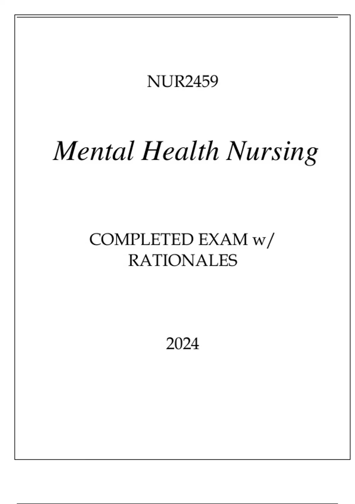 NUR2459 MENTAL HEALTH NURSING COMPLETED EXAM WITH RATIONALES 2024.