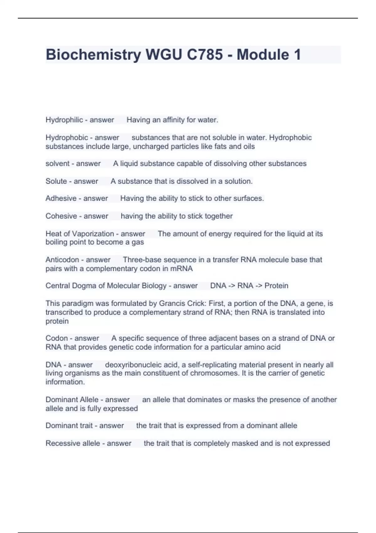 Biochemistry WGU C785 - Module 1 Questions and Answers 1000% Correct