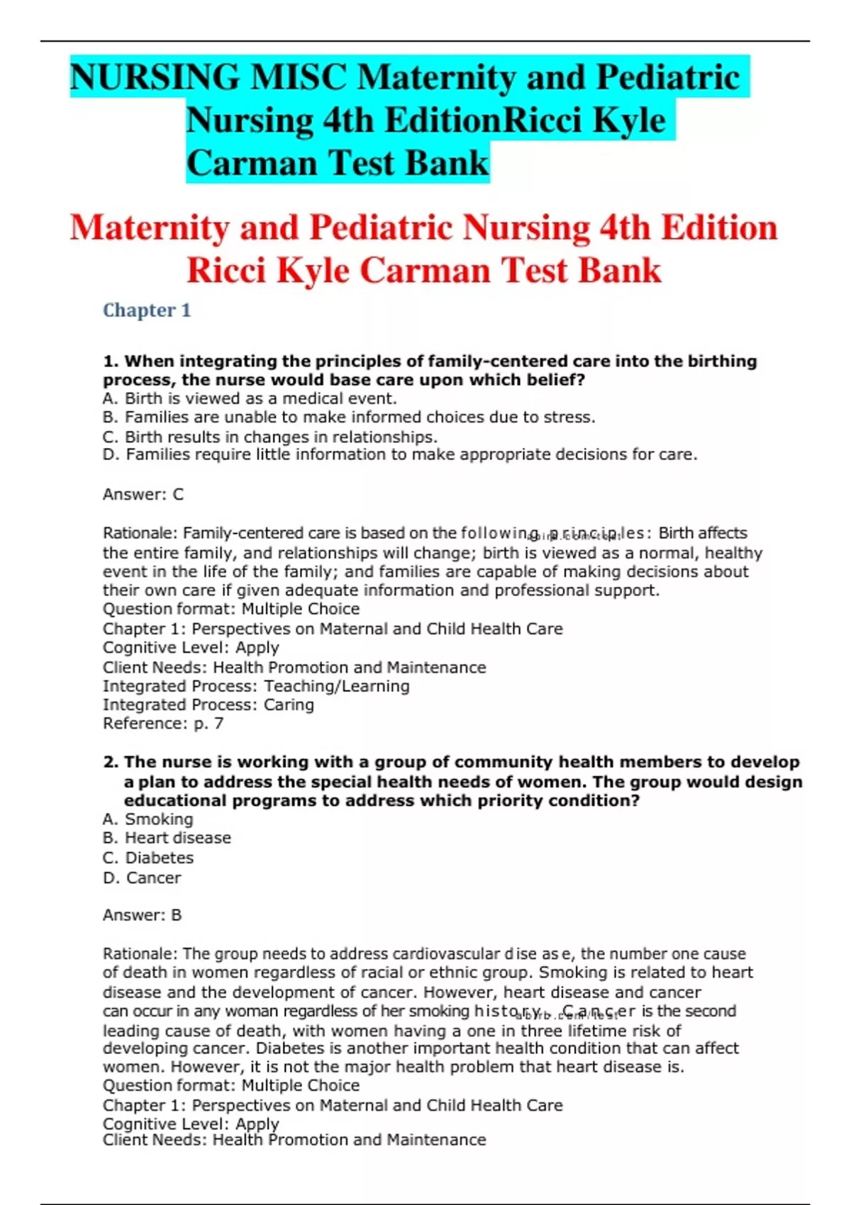 NURSING MISC Maternity and Pediatric Nursing 4th Edition Ricci Kyle Carman Test Bank NURSING MISC Maternity and Pediatric Nursing 4th Edition Ricci Kyle Carman Test Bank NURSING MISC Maternity and Pediatric Nursing 4th Edition Ricci Kyle Carman Test Bank