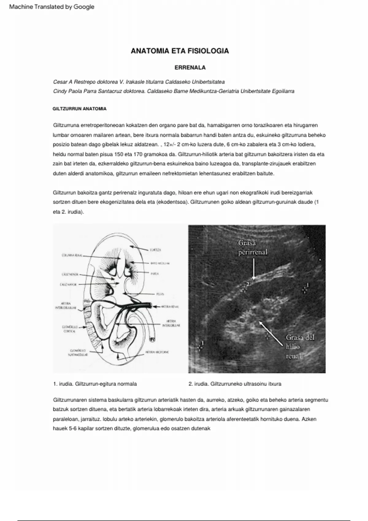 Giltzurrun bakoitza gantz perirenalz inguratuta dago, hiloan ere ehun ugari non ekografikoki irudi bereizgarriak
