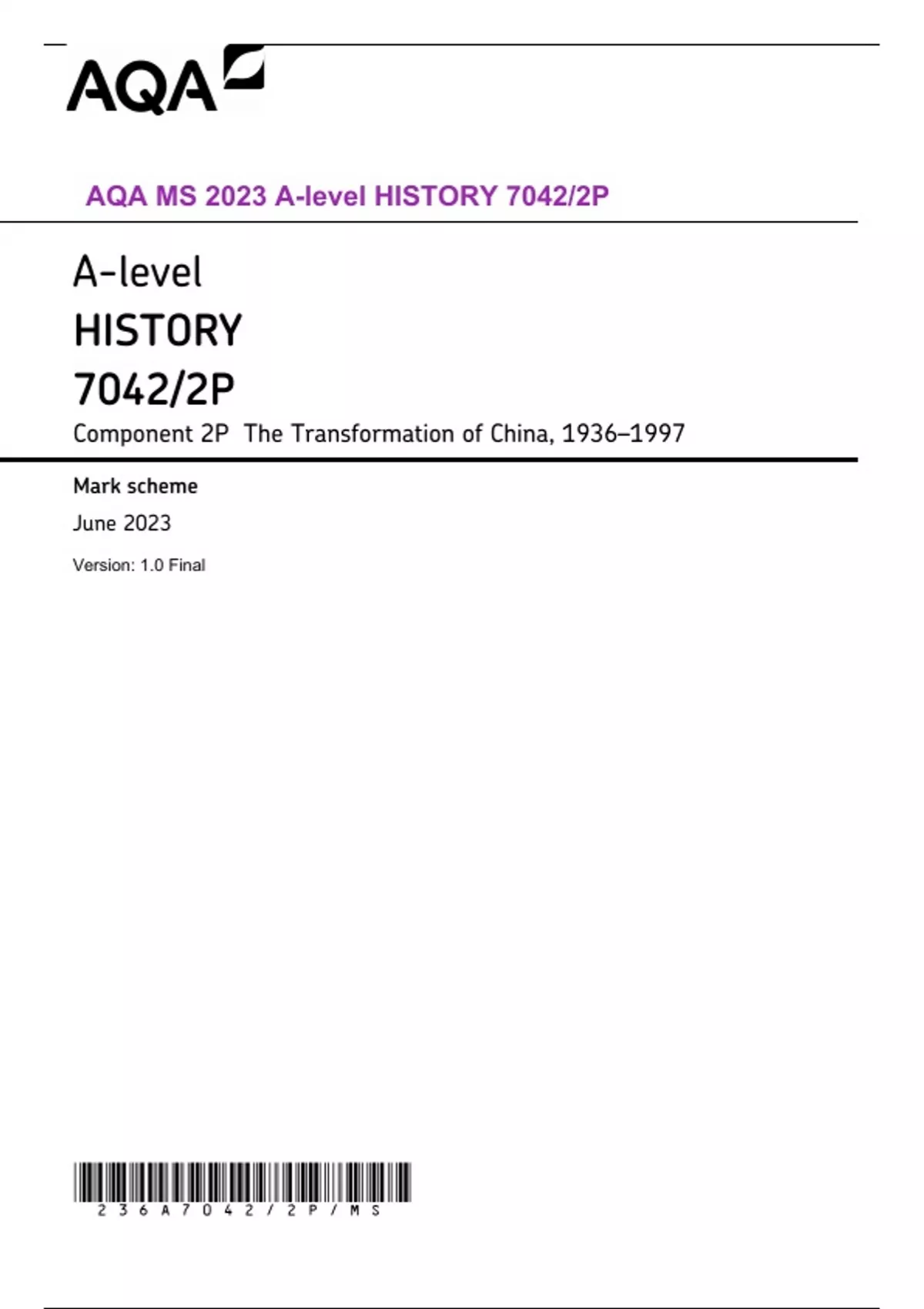 , MARK SCHEME – A-LEVEL HISTORY – 7042/2P – JUNE 2023