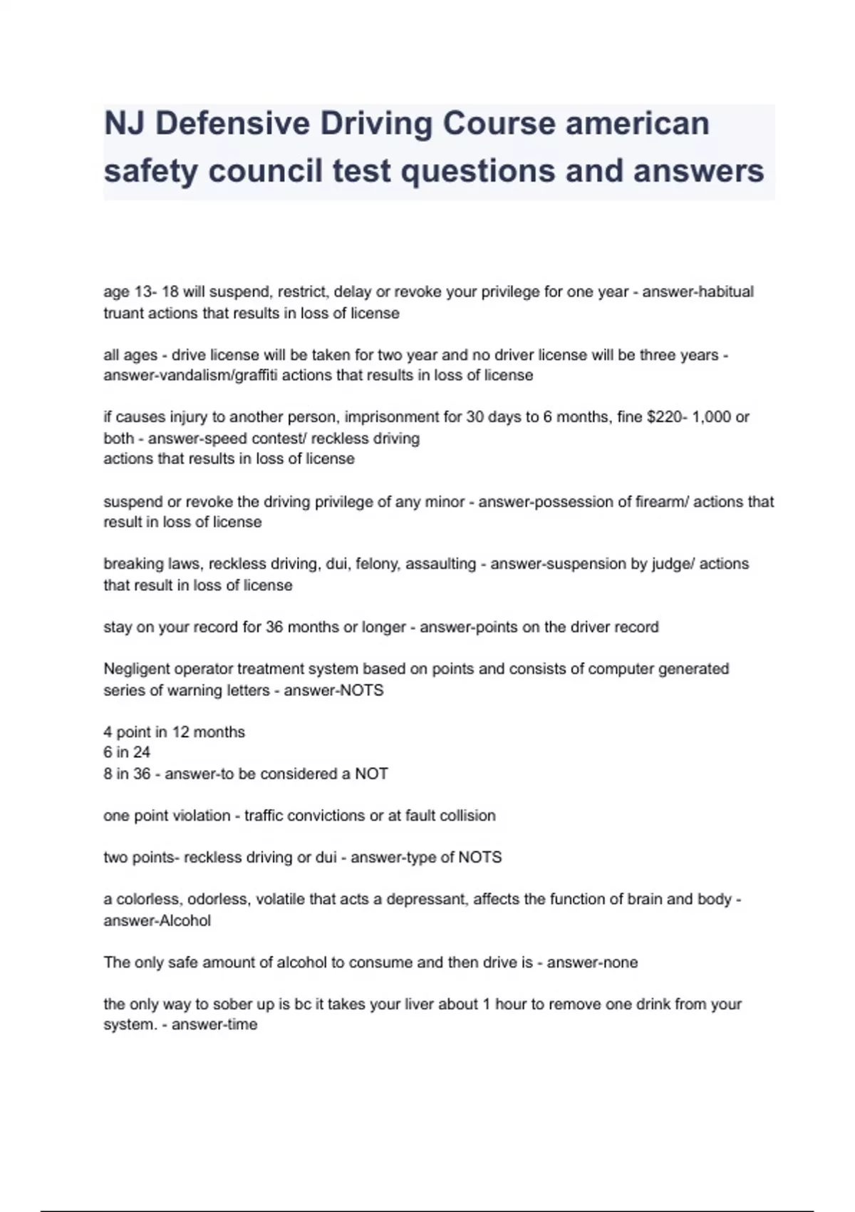 New Jersey Defensive Driving Course (American Safety Council) 2023/2024 with Complete Solutions 100% CORRECT